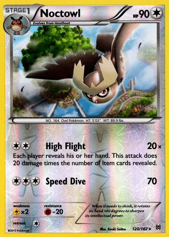 2015 Pokemon TCG Noctowl 120/162 Reverse Holo Rare XY Breakthrough Ungraded