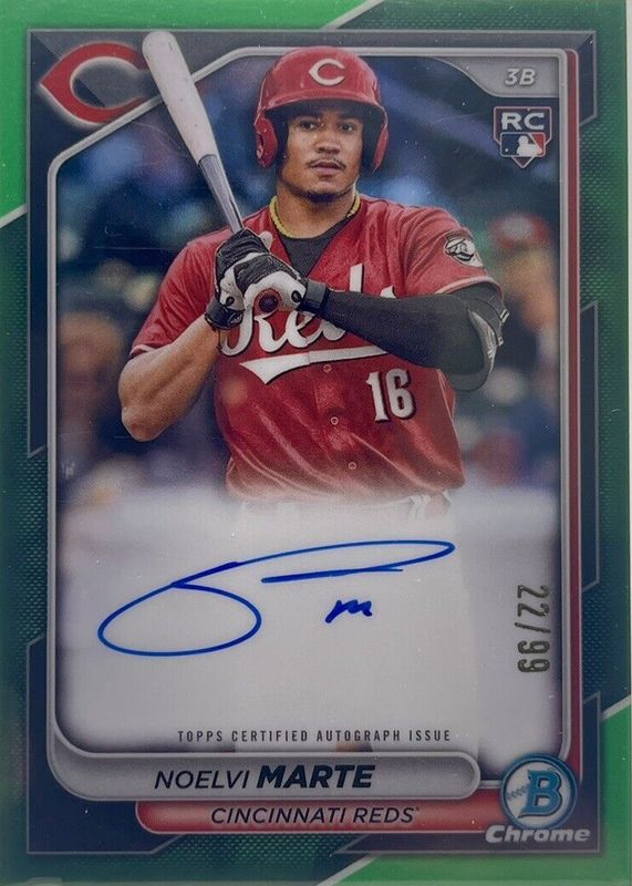 2024 Bowman Chrome Noelvi Marte RC Green Refractor On Card Auto /99 Reds #CRA-NM