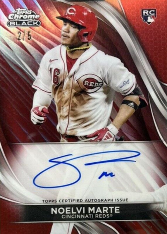 Recent Sales of Noelvi Marte 2024 Topps Chrome Black #CBA-NM Autographs - Red Refractor /5 Rookie Raw