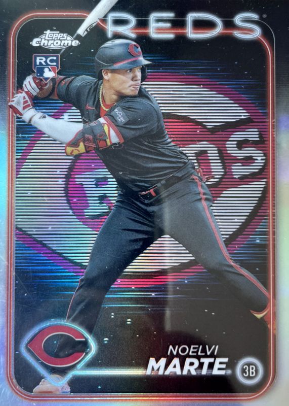 This card is 1 of 89 Noelvi Marte's card variations in the 2024 Topps Chrome set being tracked by Sports Card Investor, including Base, Negative Refractor, Pink Refractor, Prism Refractor, and RayWave Refractor.