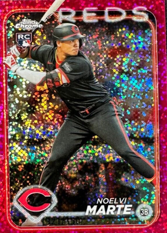 The Noelvi Marte 2024 Topps Chrome #177 Magenta Speckle Refractor /350 Rookie card in Raw condition has moved up $1.01 (+102%) in the last 30 days and was last sold for $2.00 .