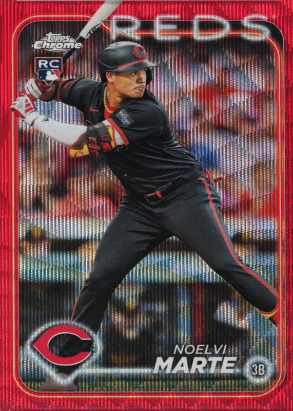 The Noelvi Marte 2024 Topps Chrome #177 Red Wave Refractor /5 Rookie card in Raw condition has not changed in price in the last 30 days.