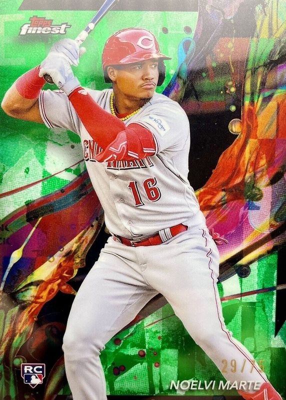 The Noelvi Marte 2024 Topps Finest #10 Common - Green Refractor /75 Rookie card in Raw condition has not changed in price in the last 30 days and was last sold for $3.26 .