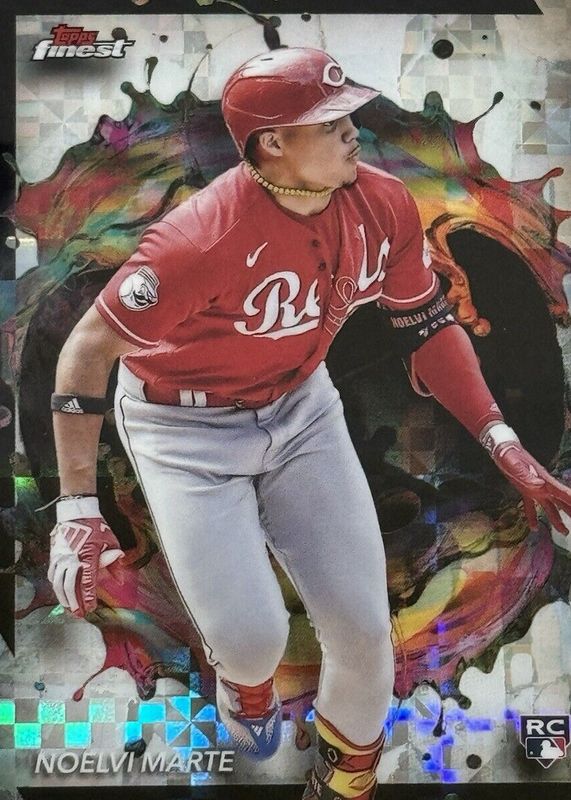 This card is 1 of 30 Noelvi Marte's card variations in the 2024 Topps Finest set being tracked by Sports Card Investor, including Common, Rare, Common - Checkerboard Refractor, Common - Refractor, and Rare - Refractor.