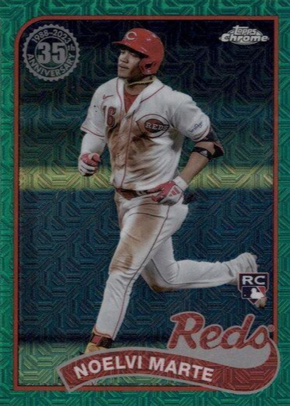 Best Prices Available For Sale of Noelvi Marte 2024 Topps Silver Pack #T89C-75 1989 Chrome Promo - Green Refractor (Series 1) /99