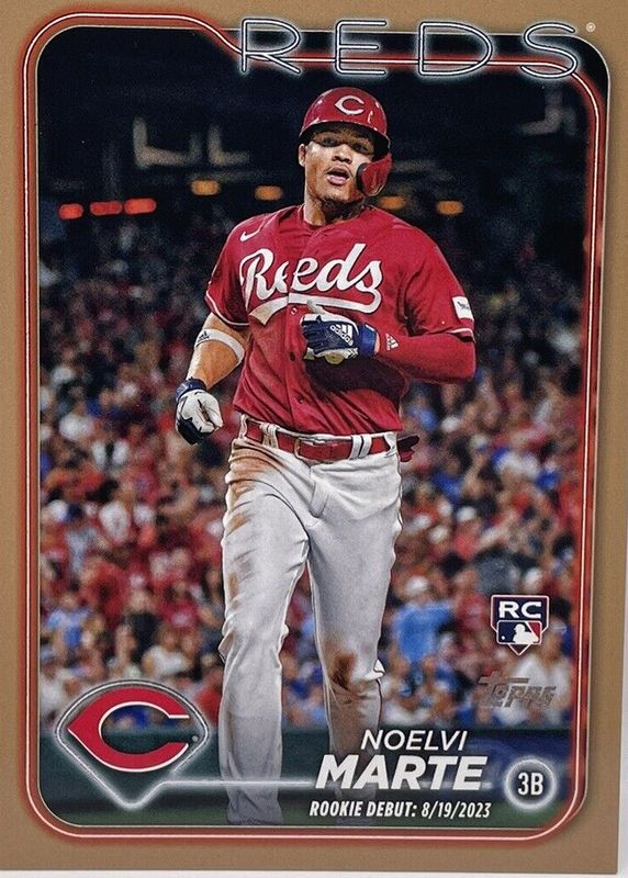 The Noelvi Marte 2024 Topps Update #US187 Rookie Debut - Gold /2024 card in Raw condition has moved up $0.01 (+1.0%) in the last 30 days and was last sold for $1.00 .