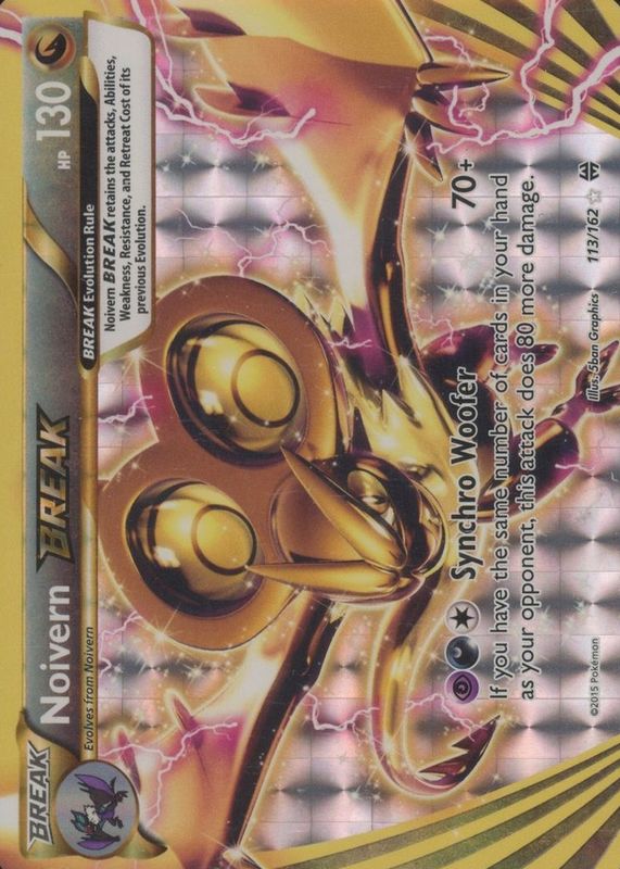 The Noivern BREAK 2015 XY: BREAKthrough #113/162 Holo card in Raw TCG (Lightly Played) condition has not changed in price in the last 30 days and was last sold for $1.99 .