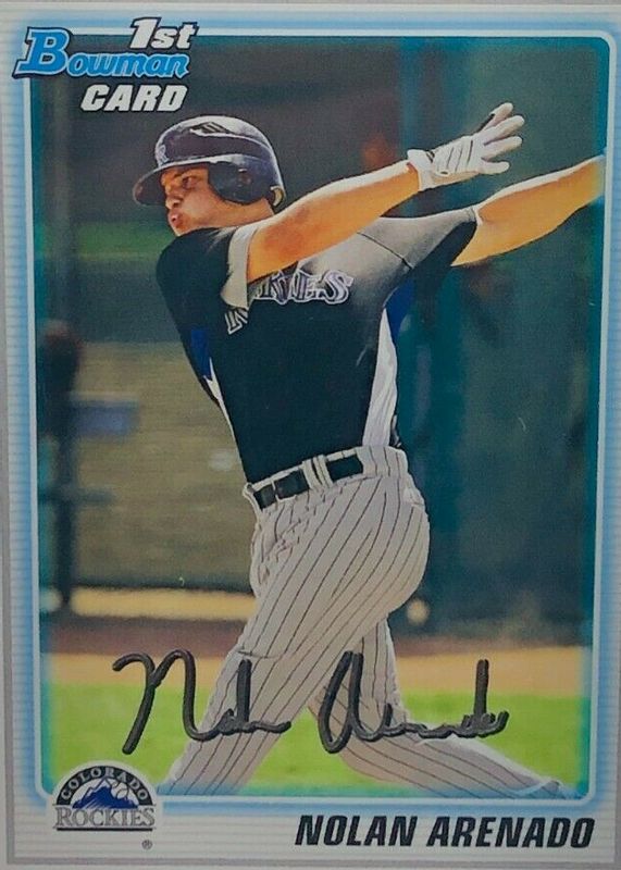 Nolan Arenado's Baseball cards are available in at least 151 sets. Nolan Arenado's biggest 7-day price movers are 2025 Topps Chrome #14 Image Variation, 2024 Topps #HFA-5 Home Field Advantage /(SSP), and 2010 Bowman #BP-91 Paper Prospects (1st).