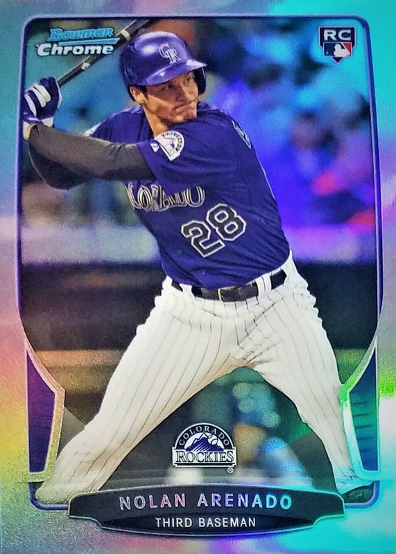 The Nolan Arenado 2013 Bowman Draft #41 Chrome - Refractor Rookie card in Raw condition has not changed in price in the last 30 days and was last sold for $9.50 .