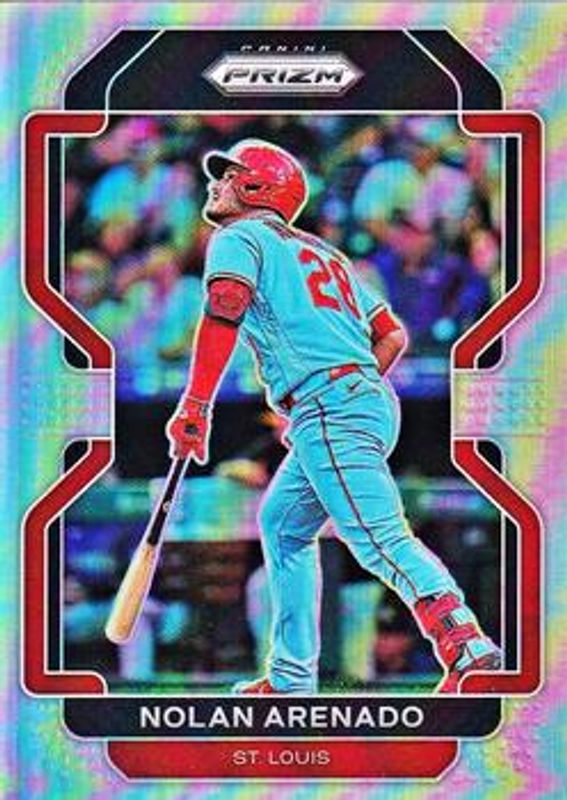 The Nolan Arenado 2022 Prizm #48 Silver card is 1 of 39 Nolan Arenado's card variations in the 2022 Prizm set being tracked by Sports Card Investor, including Base, Blue, Blue Velocity, Carolina Blue, and Cosmic Haze.