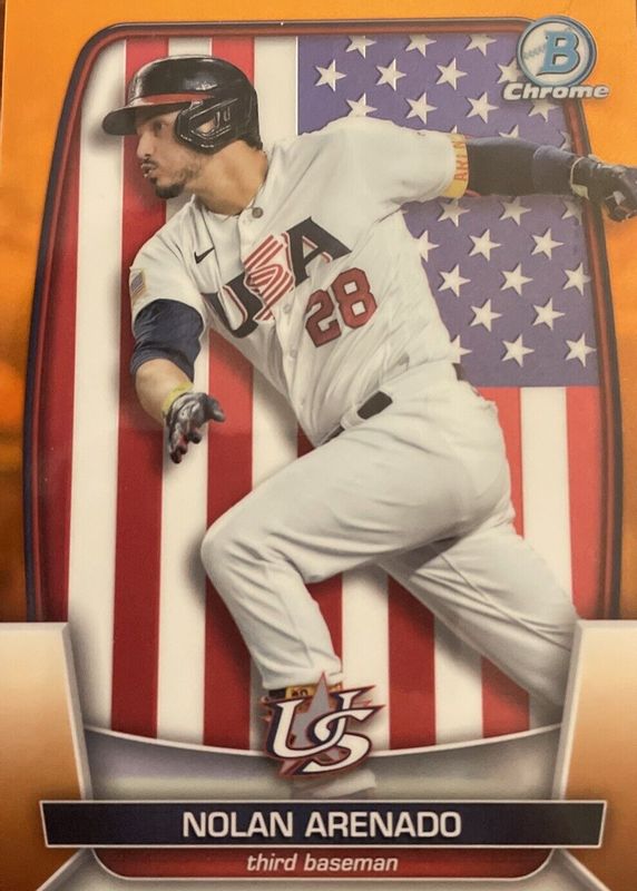 Nolan Arenado Orange Refractor 2023 Bowman Chrome WBC Flag Variation USA Ssp /25