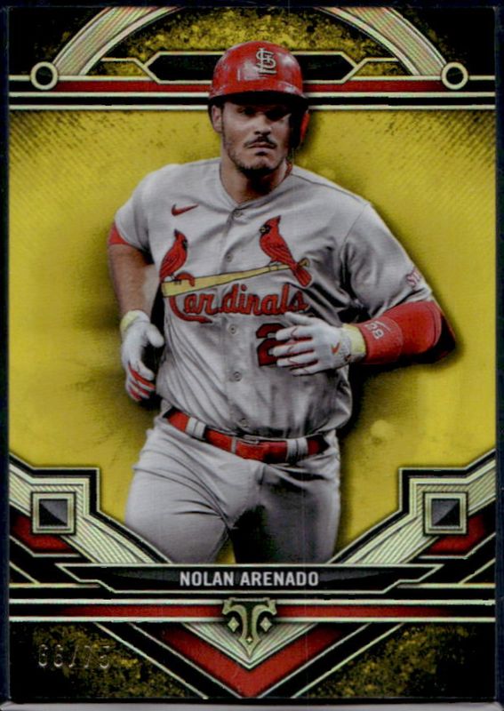 The Nolan Arenado 2024 Topps Triple Threads #39 Citrine /75 card is 1 of 102 Nolan Arenado's card variations in the 2024 Topps Triple Threads set being tracked by Sports Card Investor, including Base, Amber /199, Aquamarine /149, Tourmaline /125, and Gold /99.