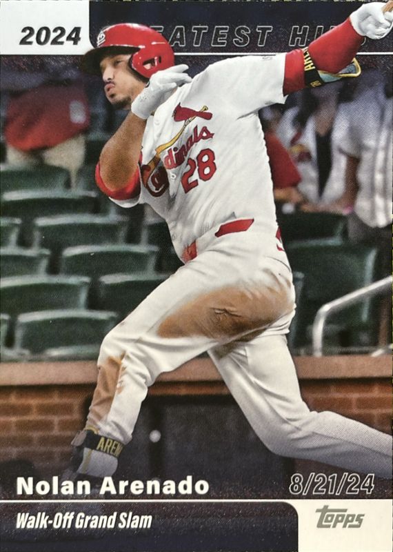 The Nolan Arenado 2025 Topps #GH-5 2024's Greatest Hits card is 1 of 256 Nolan Arenado's card variations in the 2025 Topps set being tracked by Sports Card Investor, including Base, Aqua Holo Foil, Diamante Foil, Holo Foil, and Pink Diamante Foil.
