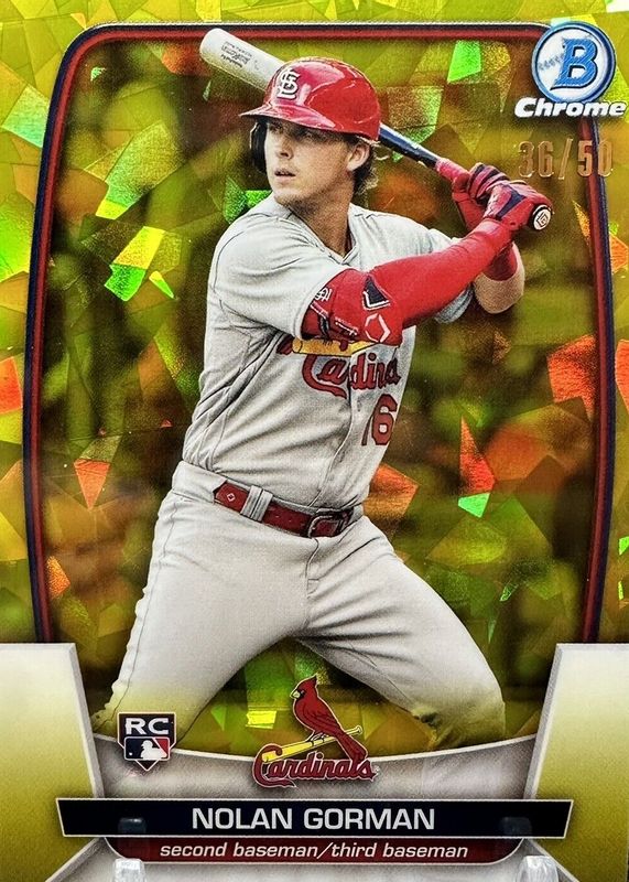 2023 Bowman Chrome Sapphire Nolan Gorman Yellow Gold Refractor /50 RC #48 SSP RC