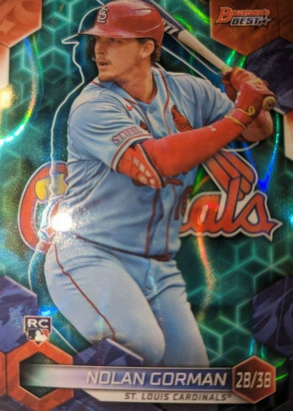 2023 Bowman's Best Nolan Gorman RC Aqua Lava Refractor Rookie #110/199 Cardinals