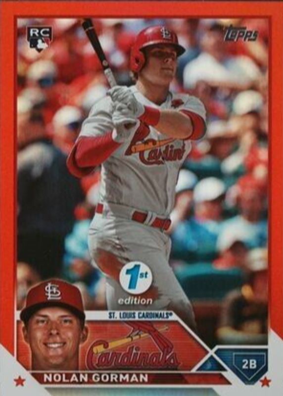 Recent Sales of Nolan Gorman 2023 Topps 1st Edition #16 Red Foil /50 Rookie PSA 9