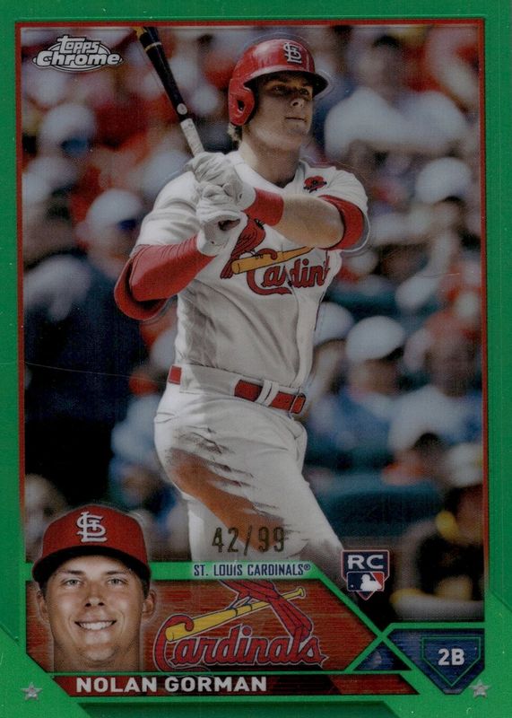 2023 Topps Chrome GREEN Refractor /99 Nolan Gorman ROOKIE RC #192 Cardinals