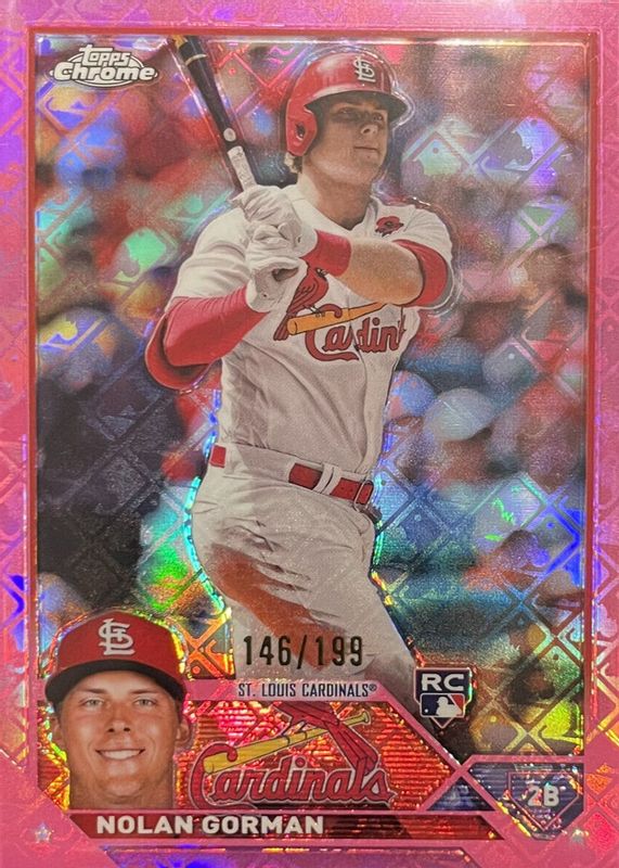 2023 Topps Chrome Nolan Gorman /199 🔥 Pink Logofractor #192 Rookie RC Cardinals