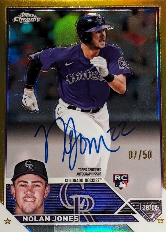 2023 TOPPS CHROME NOLAN JONES RC GOLD REFRACTOR AUTO 21/50 COLORADO ROCKIES