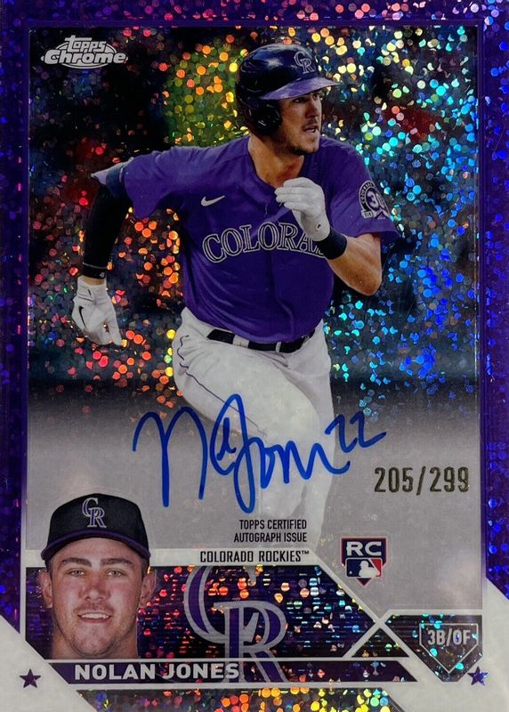 2023 Topps Chrome Nolan Jones /299 Purple Speckle RC Auto Color Match Rockies