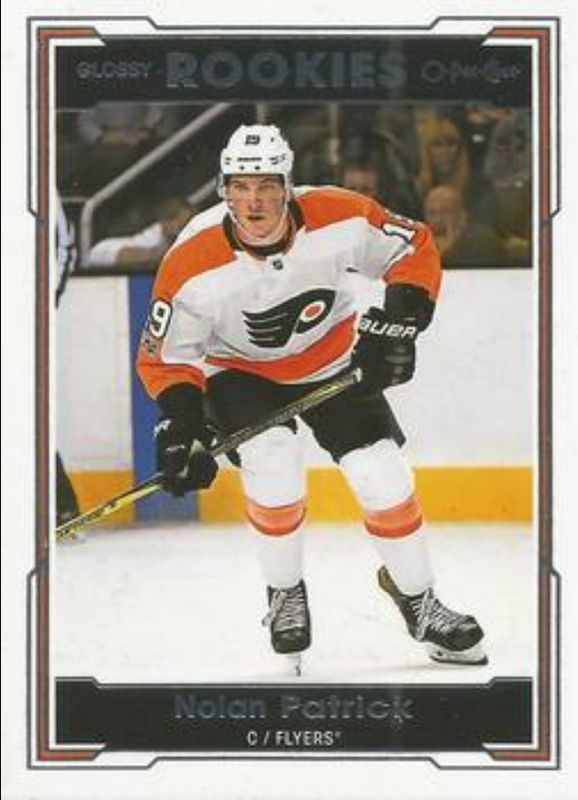 The Nolan Patrick 2017 Upper Deck #R-7 2017 O-Pee-Chee Update Glossy Rookies card is 1 of 40 Nolan Patrick's card variations in the 2017 Upper Deck set being tracked by Sports Card Investor, including Young Guns Base, Young Guns Canvas, Gold Rainbow Foil, Silver Foil, and Young Guns - Clear Cut.