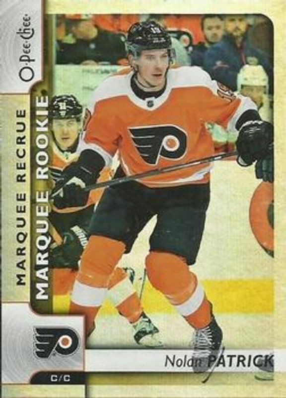 The Nolan Patrick 2017 Upper Deck #640 2017 O-Pee-Chee Update - Rainbow Foil Rookie card is 1 of 40 Nolan Patrick's card variations in the 2017 Upper Deck set being tracked by Sports Card Investor, including Young Guns Base, Young Guns Canvas, Gold Rainbow Foil, Silver Foil, and Young Guns - Clear Cut.