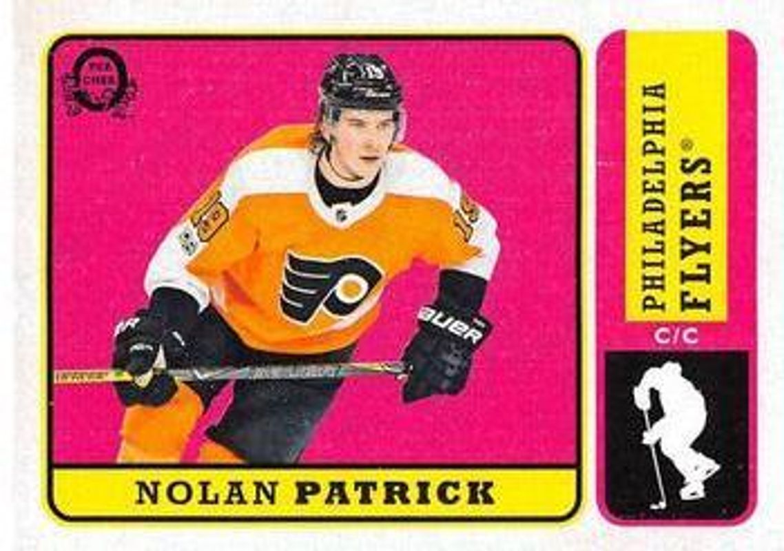 The Nolan Patrick 2018 O-Pee-Chee #215 Retro Blank Back card is 1 of 10 Nolan Patrick's card variations in the 2018 O-Pee-Chee set being tracked by Sports Card Investor, including Base, Gold Border Glossy, Retro, Retro No Name Scratch Off, and Silver.