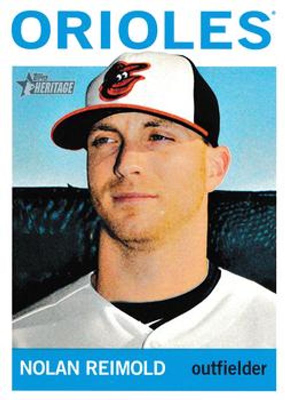 The Nolan Reimold 2013 Topps Heritage #336 Base card is 1 of 2 Nolan Reimold's card variations in the 2013 Topps Heritage set being tracked by Sports Card Investor, including Venezuelan.