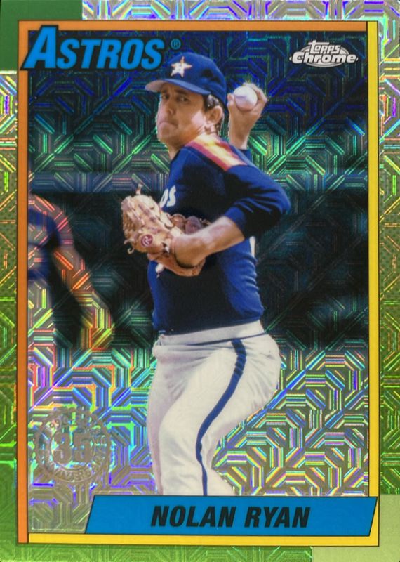The Nolan Ryan 2025 Topps #T90C-9 1990 Baseball Chrome Silver Pack card is 1 of 86 Nolan Ryan's card variations in the 2025 Topps set being tracked by Sports Card Investor, including 1990 Topps Baseball, 1990 Topps Baseball - Pink, All-Star, 1990 Baseball All-Star Autographs (Series 2), and 1990 Baseball All-Star - Pink.