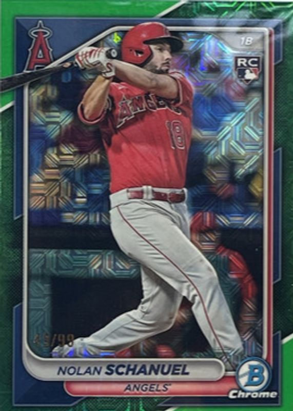 2024 Bowman Chrome Nolan Schanuel #47 Mega Box Green Refractor #'d /99 RC Angels