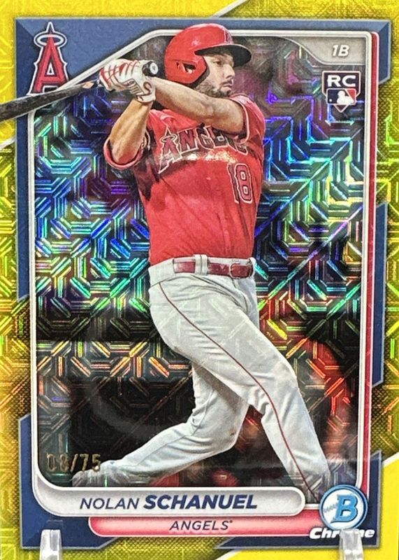 Auctions Ending Soon for Nolan Schanuel 2024 Bowman Chrome Mega Box #47 Yellow Mojo Refractor /75 Rookie RAW