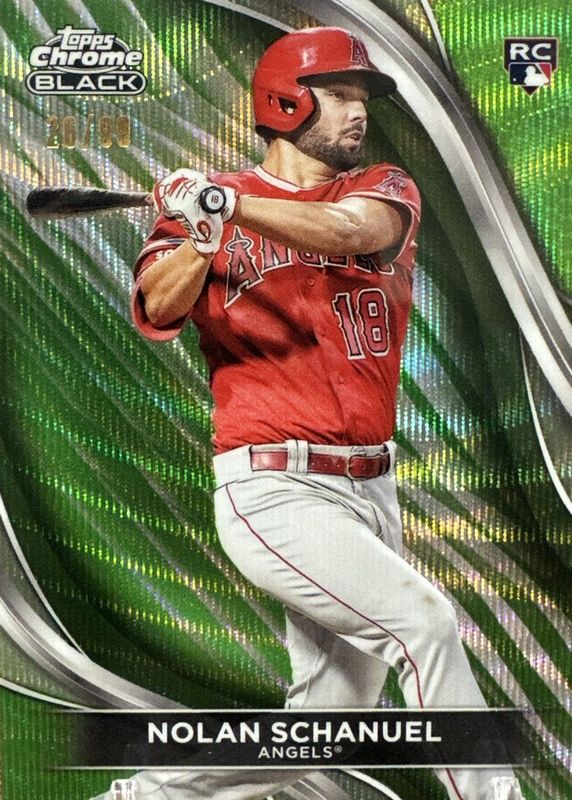 The Nolan Schanuel 2024 Topps Chrome Black #75 Green Wave Refractor /99 Rookie card in Raw condition has not changed in price in the last 30 days and was last sold for $5.99 .