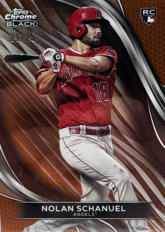 2024 Topps Chrome Black Nolan Schanuel RC Orange Refractor 10/25 #75 LA Angels