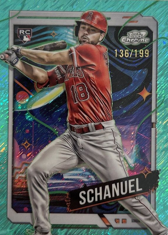 2024 Topps Cosmic Chrome Nolan Schanuel RC Aqua Equinox Refractor #0/199 Angels