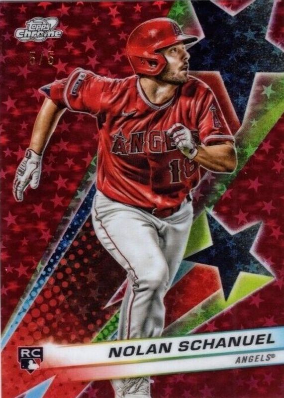 Auctions Ending Soon for Nolan Schanuel 2024 Topps Chrome Cosmic #SF-82 Starfractor - Red Flare Refractor /5 Rookie RAW