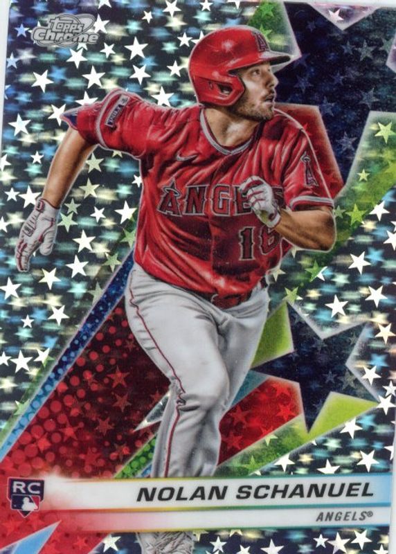 The Nolan Schanuel 2024 Topps Chrome Cosmic #SF-82 Starfractor Rookie card in Raw condition has not changed in price in the last 30 days and was last sold for $3.25 .