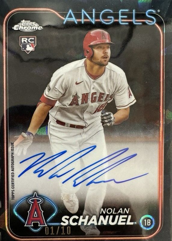 The Nolan Schanuel 2024 Topps Chrome Sapphire Edition #CSA-NS Autographs - Black /10 Rookie card in Raw condition has not changed in price in the last 30 days and was last sold for $124.19 .