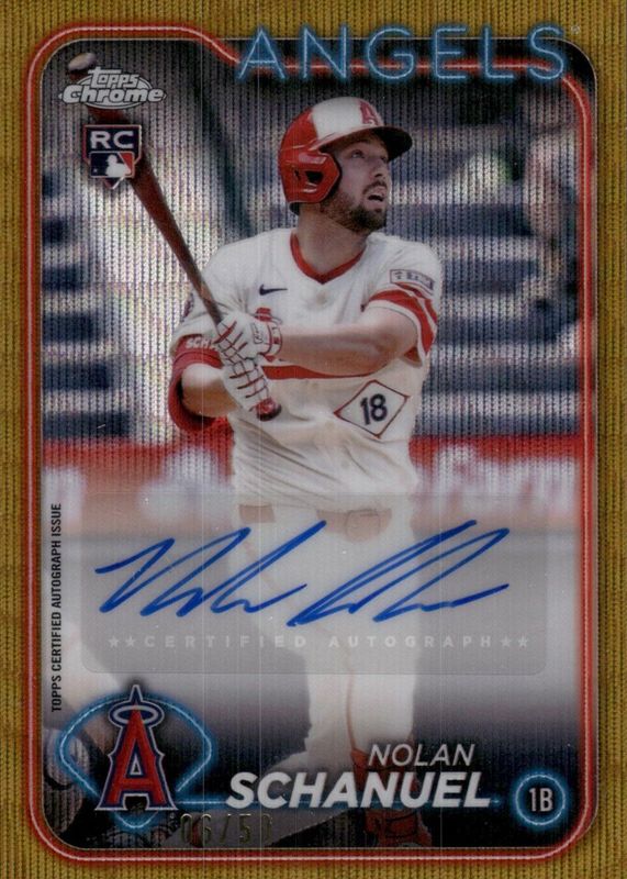 Nolan Schanuel RC 2024 Topps Chrome Update Angels Gold Wave Refractor Auto /50