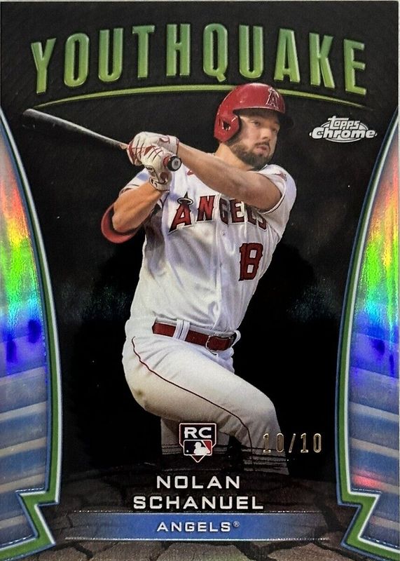The Nolan Schanuel 2024 Topps Chrome #YQ-30 Youthquake - Black Refractor /10 Rookie card in Raw condition has not changed in price in the last 30 days and was last sold for $49.99 .
