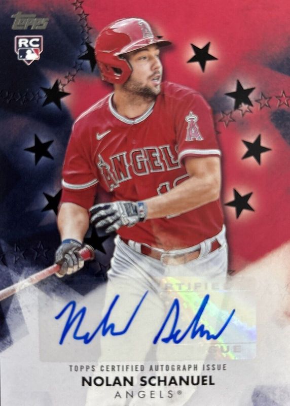 The Nolan Schanuel 2024 Topps Update #BSA-NSC Baseball Stars Autographs - Black /199 Rookie card in Raw condition has not changed in price in the last 30 days and was last sold for $10.00 .
