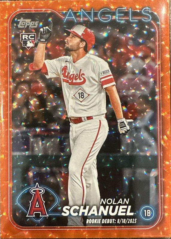 2024 Topps Update #US193 Nolan Schanuel Orange Foil Parallel RC /299. Angels.