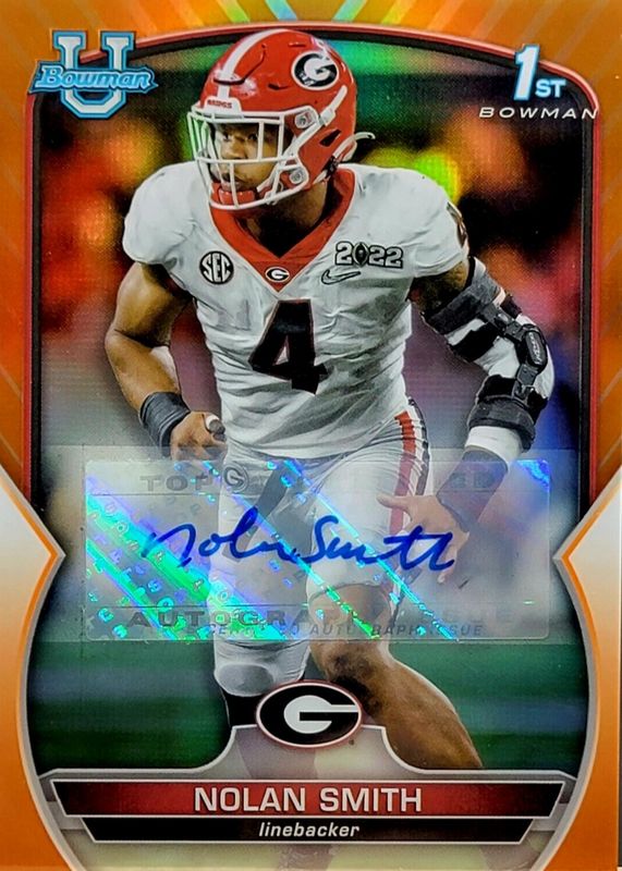 Nolan Smith SSP#/25 2022 Bowman Chrome University Orange Refractor Auto Georgia