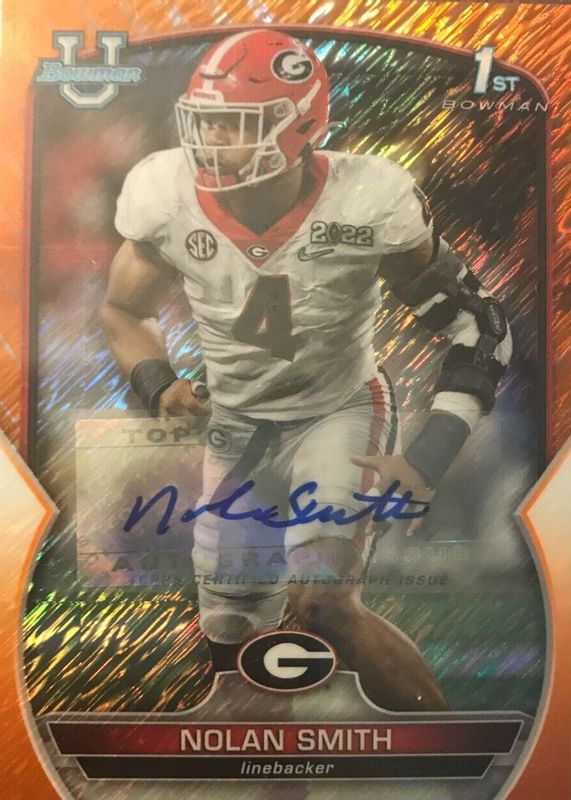 Nolan Smith 2022 Bowman Chrome U 1st ROOKIE ORANGE SHIMMER REFRACTOR AUTO /25