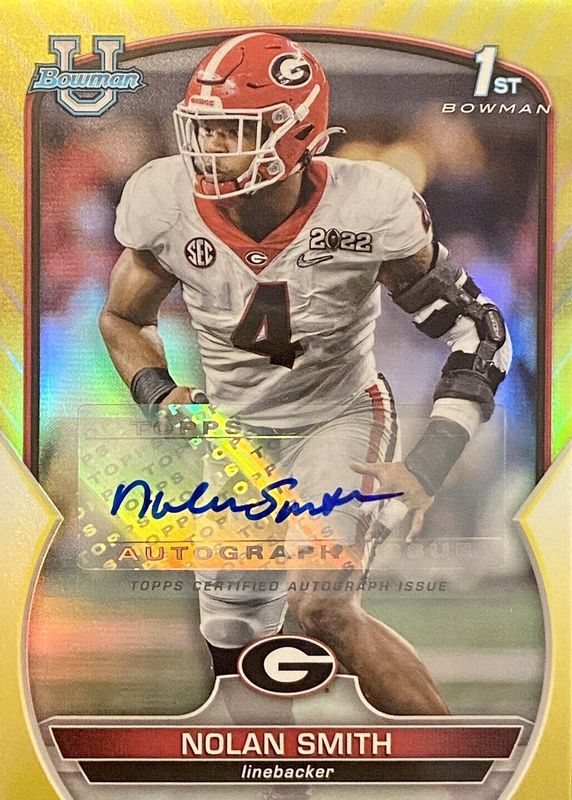 2022 Bowman Chrome University Nolan Smith Auto Yellow Refractor Auto /75 UGA 1st