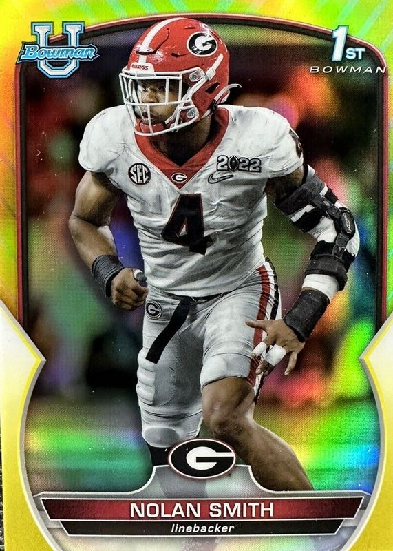 2022 Bowman University Chrome Yellow Refractor 50/75 Nolan Smith #33 Eagles