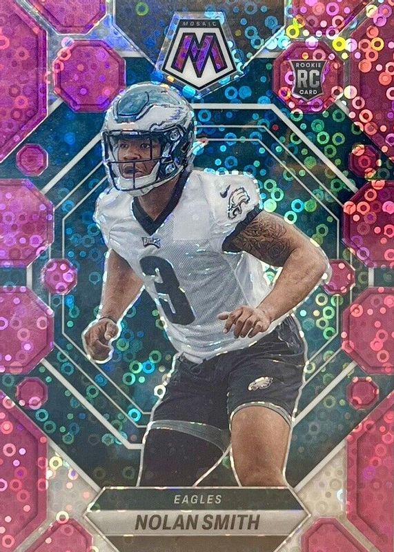 The Nolan Smith Jr. 2023 Mosaic #353 No Huddle Pink /20 Rookie card in Raw condition has not changed in price in the last 30 days and was last sold for $22.00 .