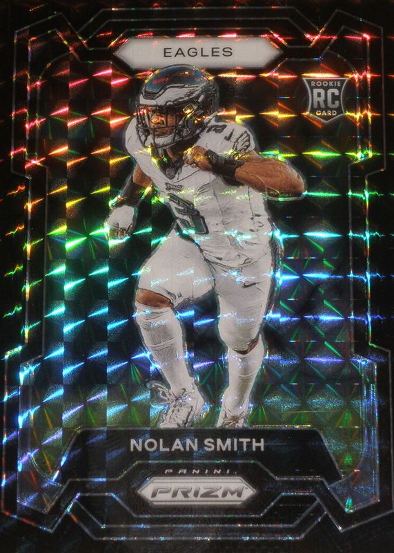 This card is 1 of 73 Nolan Smith Jr.'s card variations in the 2023 Prizm set being tracked by Sports Card Investor, including Base, Disco, Green, Green Ice, and Green Wave.