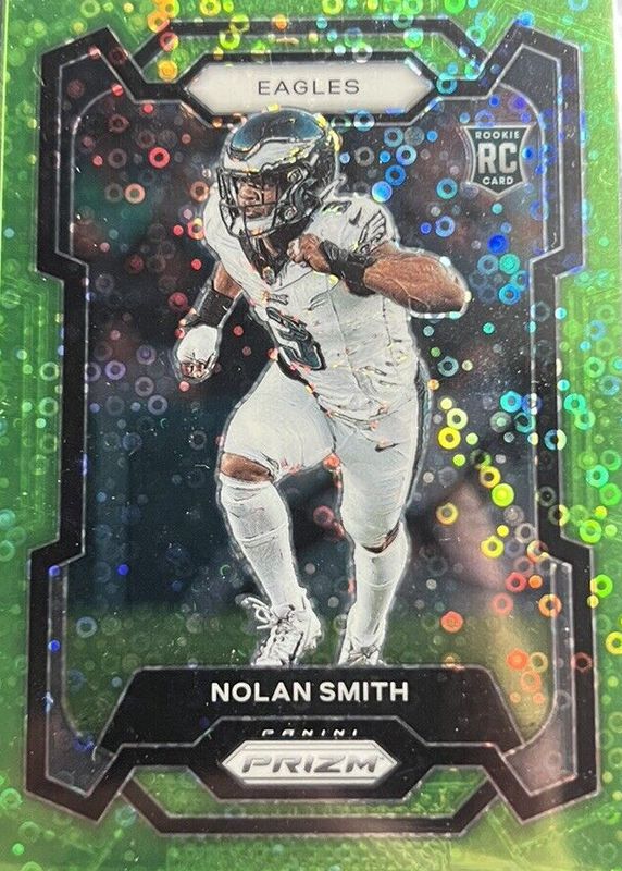 The Nolan Smith Jr. 2023 Prizm #382 No Huddle Neon Green /5 Rookie card in Raw condition has not changed in price in the last 30 days and was last sold for $51.00 .