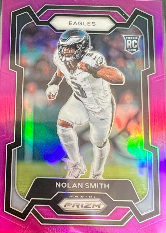 The Nolan Smith Jr. 2023 Prizm #382 Purple /125 Rookie card in Raw condition has not changed in price in the last 30 days and was last sold for $1.00 .