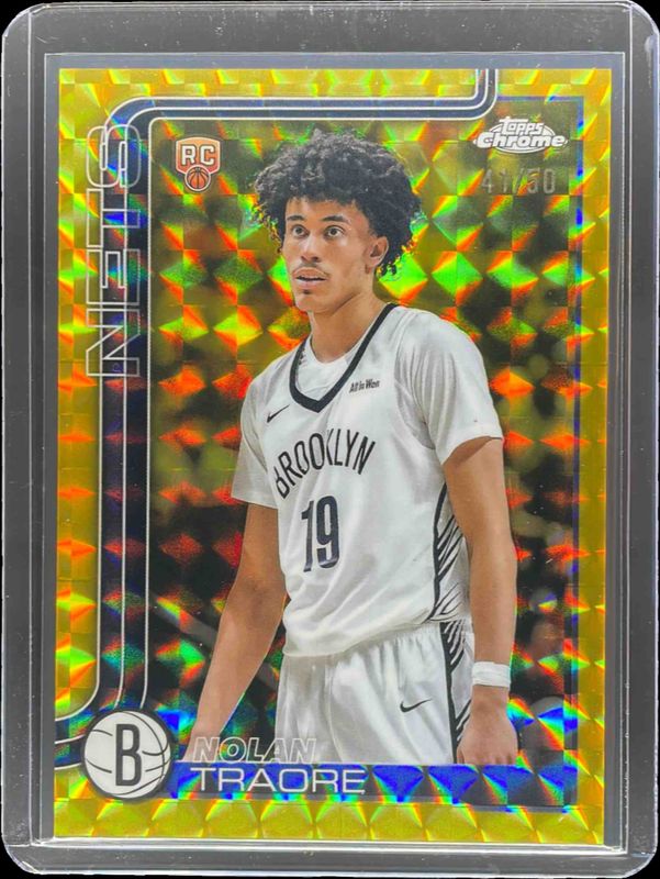 The Nolan Traore 2025 Topps Chrome #269 Gold Geometric Refractor /50 Rookie card is 1 of 209 Nolan Traore's card variations in the 2025 Topps Chrome set being tracked by Sports Card Investor, including Base, 1st Day Issue Refractor, Basketball Refractor, Box Set Refractor, and Image Variation.